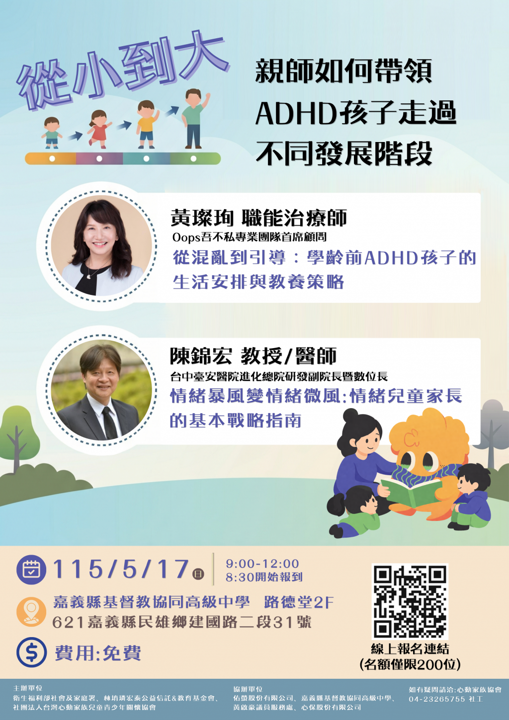 轉知有關社團法人台灣心動家族兒童青少年關懷協會辦理「親師如何帶領ADHD孩子走過不同發展階段講座」,相關資訊詳如附件。